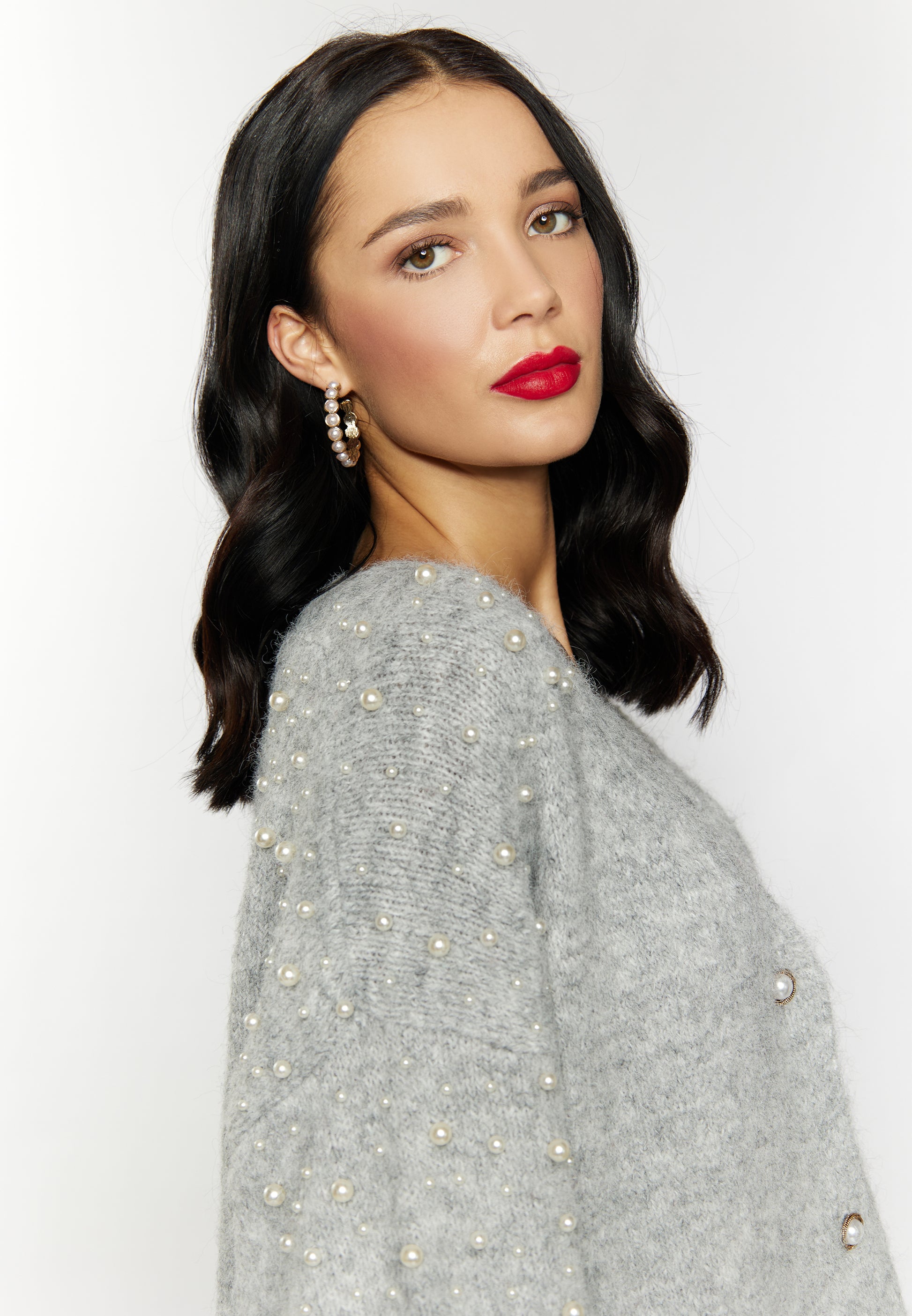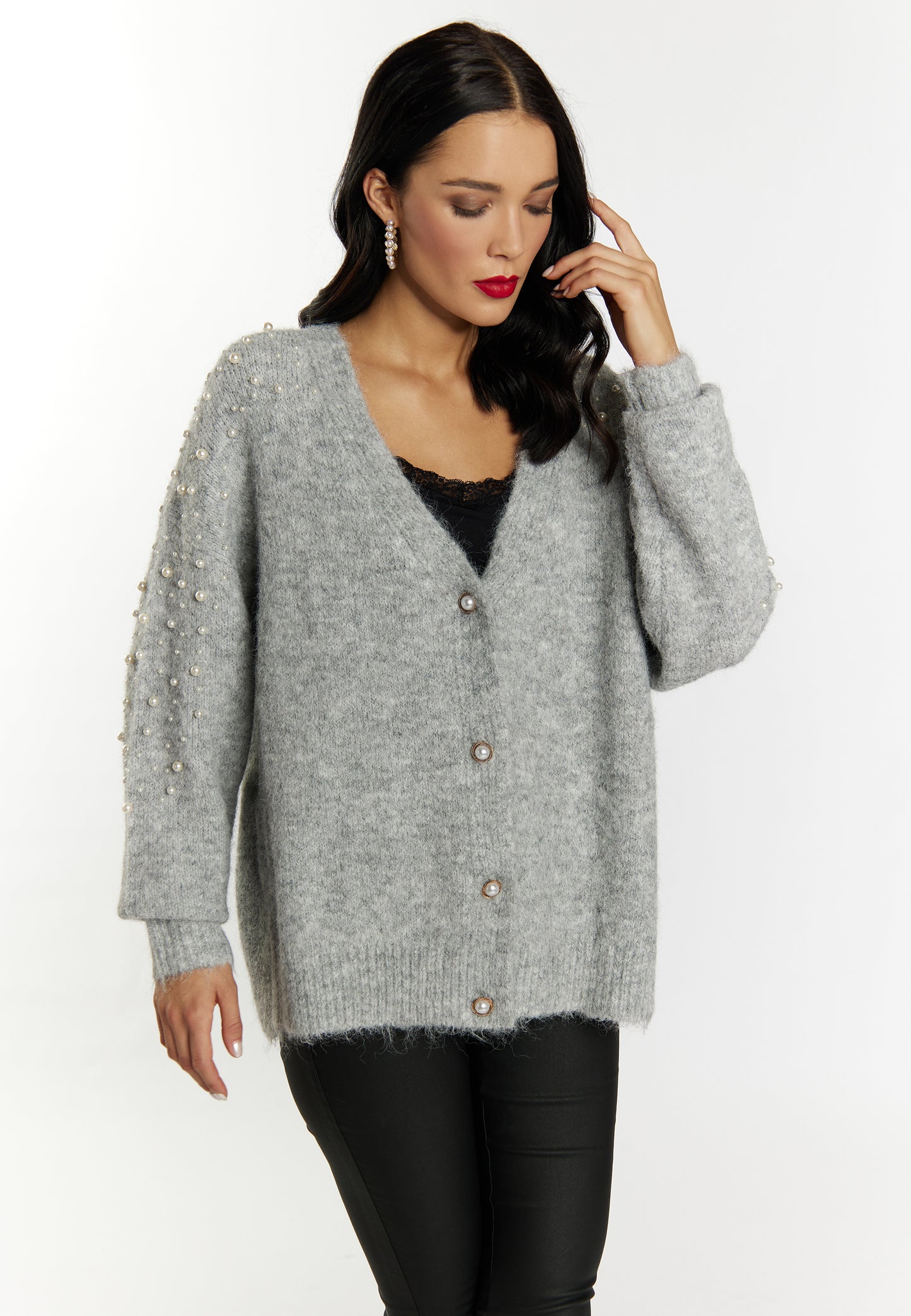 faina damski kardigan z perełkami
