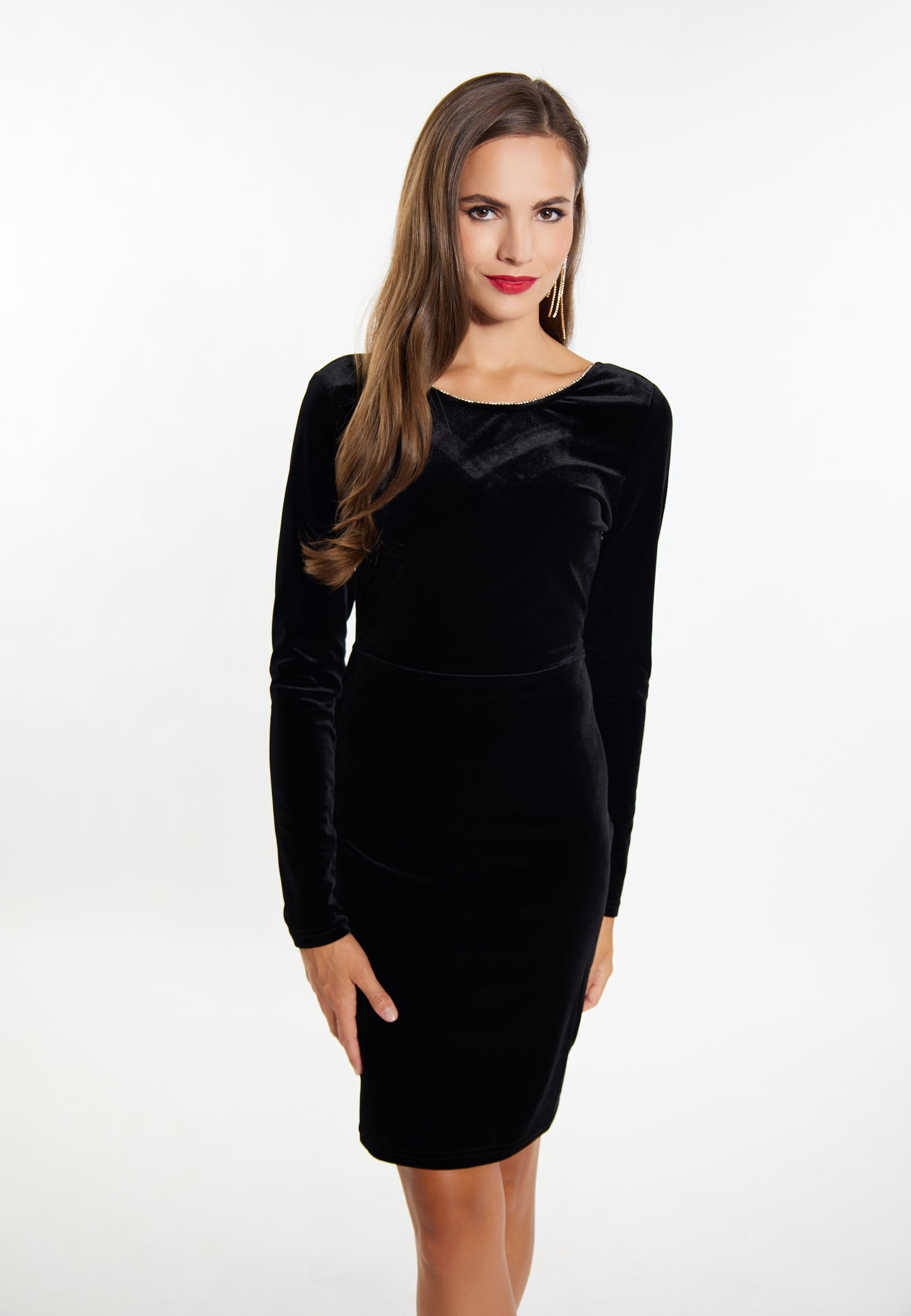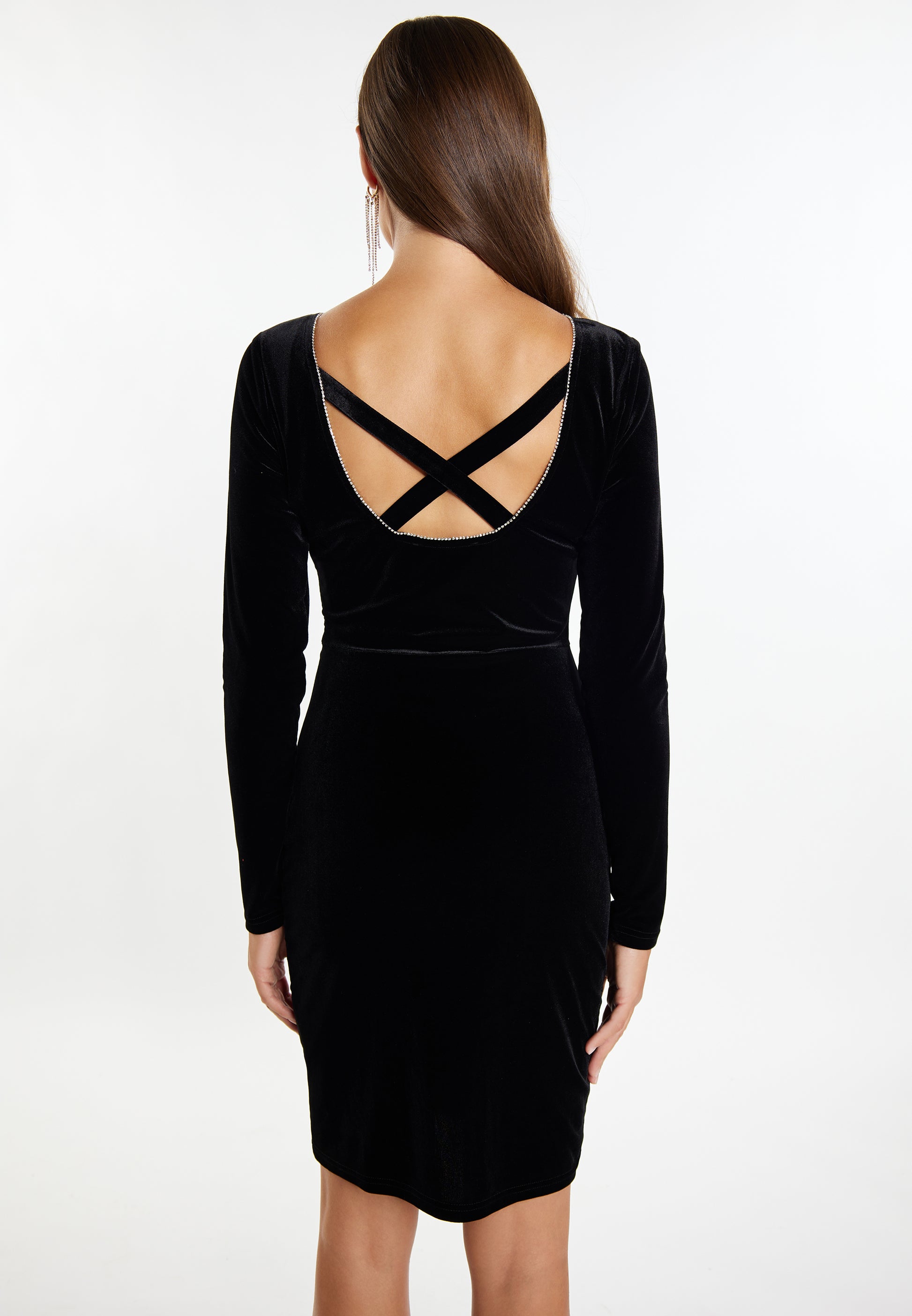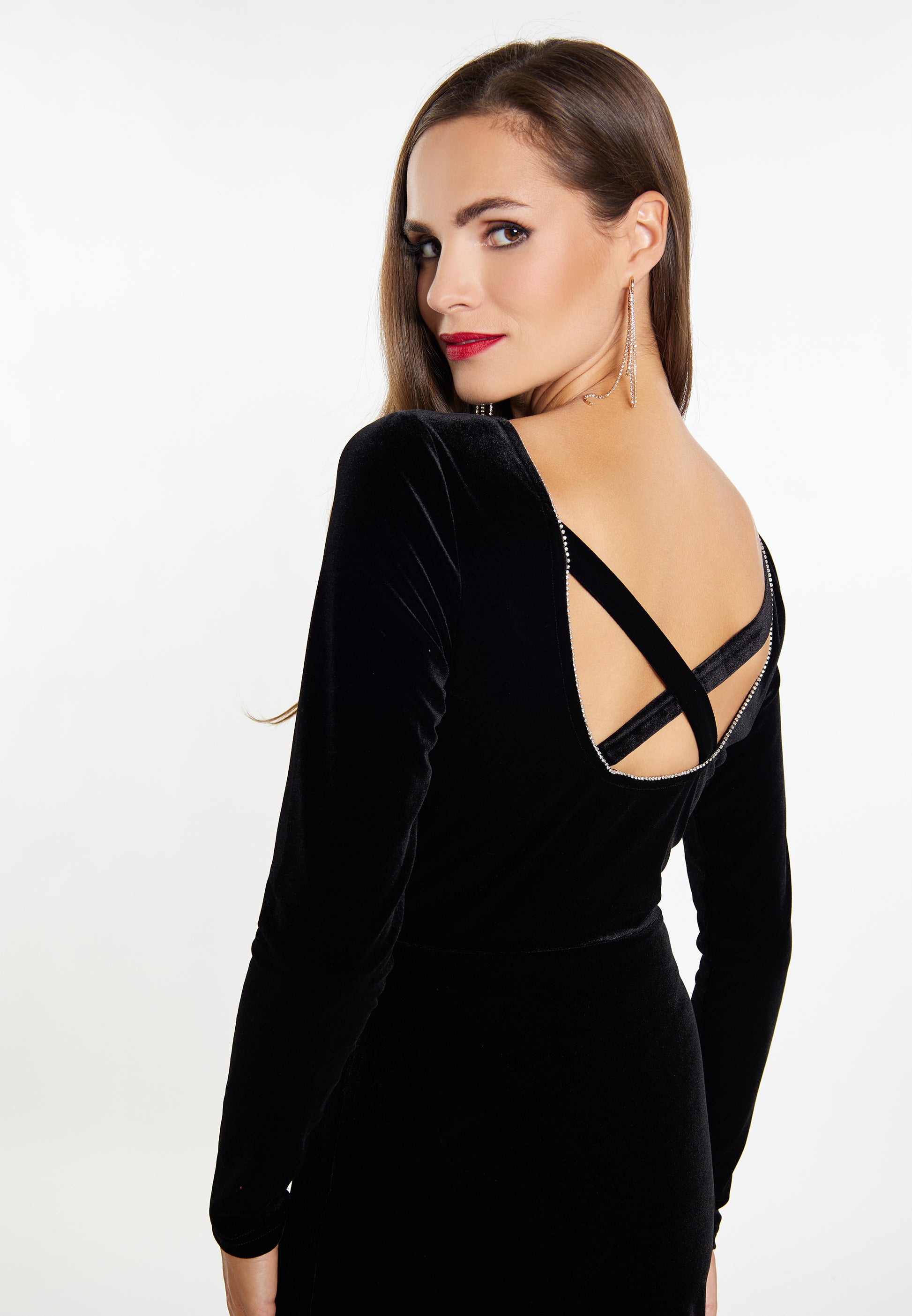 faina damska sukienka z aksamitu z kryształkami